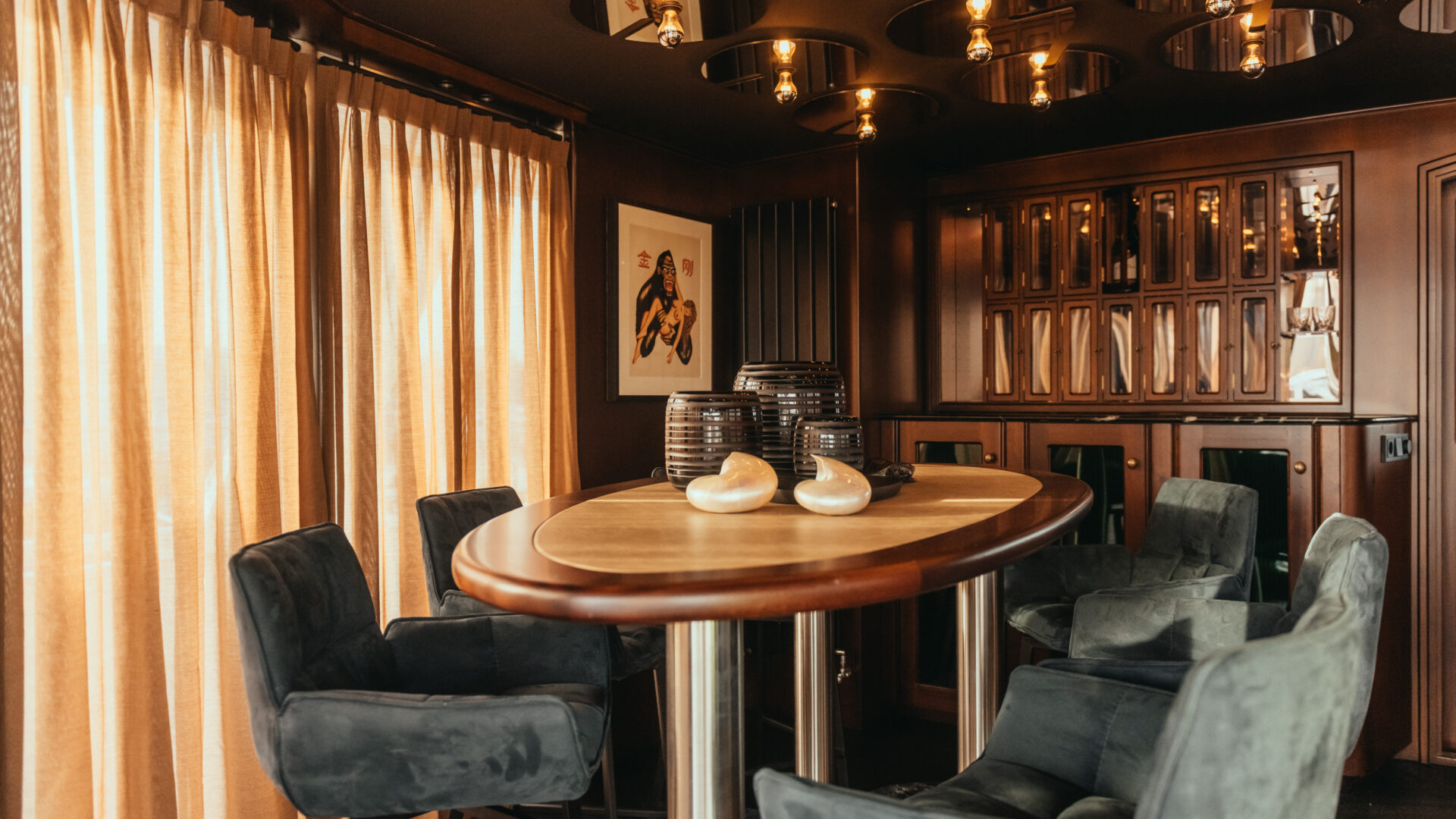 Thales beschikt over drie niveaus met verschillende sfeervolle ruimtes, waaronder een panoramadek, een stijlvolle saloon, een intieme bar en luxueuze cabines. Het schip is geschikt voor gezelschappen tot circa 25 personen en biedt volop mogelijkheden voor private dining, zakelijke bijeenkomsten, fotoshoots of exclusieve dagvaarten.Culinaire Beleving